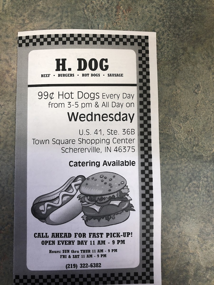 When you're in the mood for a delicious and satisfying meal, H Dog Menu is the perfect spot to check out. Located at 36 US-41, Schererville, IN, this place serves up an array of mouth-watering hot dogs that will leave you coming back for more. Whether you prefer classic toppings or are in the mood for something a bit more adventurous, H Dog has a menu that caters to every craving. From perfectly grilled sausages to unique and flavorful combinations, you’ll find something that hits the spot. Add in some crispy fries and refreshing drinks, and you’ve got the ultimate casual dining experience. No matter the occasion, H Dog is ready to serve up tasty meals with a smile!